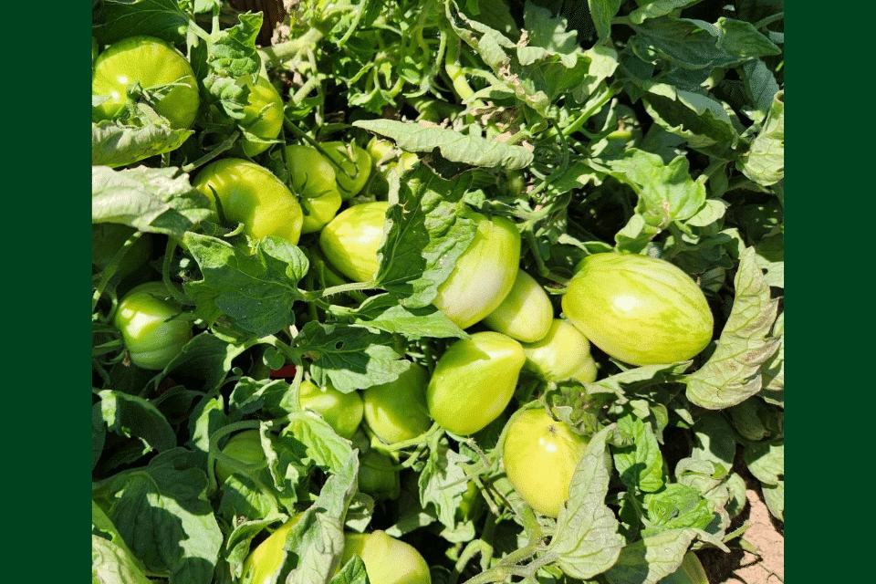 Dwarf Saucy Mary Tomato produces loads of green-skinned tomatoes with light and dark green stripes and bright green flesh—great for sauces and fresh eating!