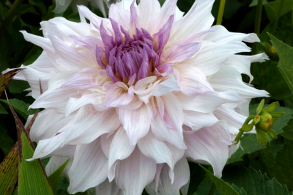 Shiloh Noelle dahlia bulbs produce large, ruffled blooms with a whisper of lavender. This eloquent dinnerplate dahlia is a show-stopper!
