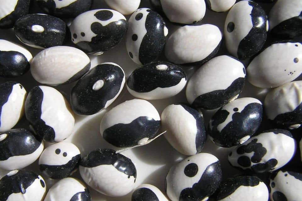 An heirloom shelling bean with beautiful half-black, half-white seeds. Also known as Yin Yang beans, these creamy dried beans are prized for soups and baking!