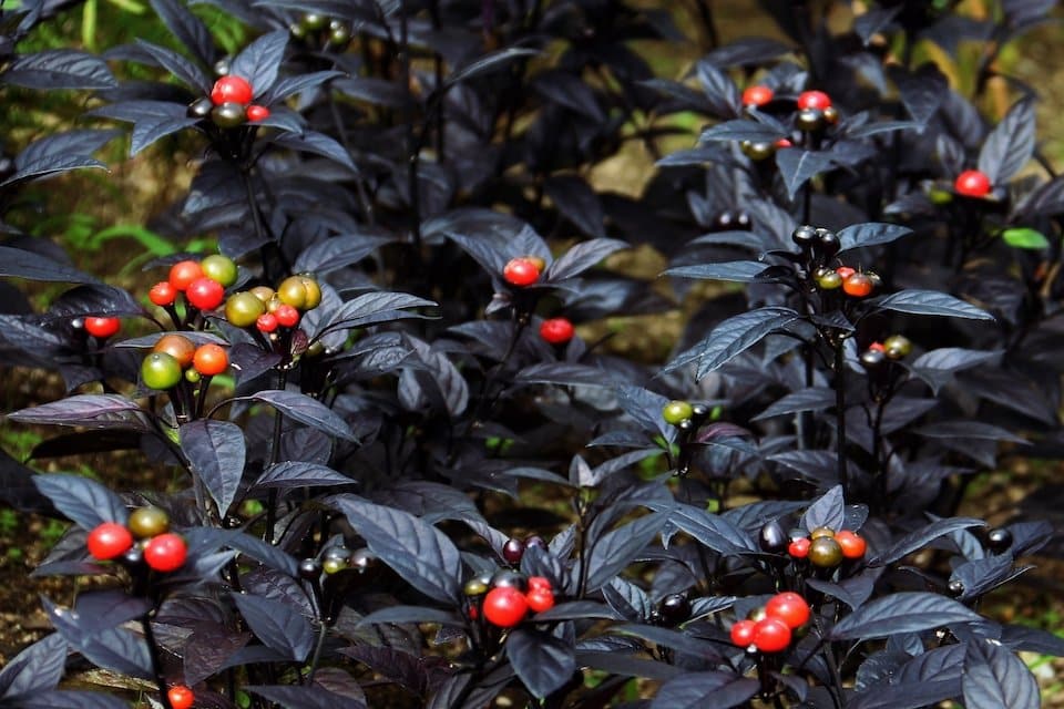 - Interplanting flowers with your peppers will make your garden beautiful and reduce pest issues. Marigolds look stunning when interplanted with pepper plants. You can also grow zinnias, cosmos, and cornflower. Try growing our other unique peppers alongside your Black Pearl Peppers. Fish Peppers look especially stunning with their variegated leaves and bi-color fruit. You can also try our Red Ruffled Pimiento Pepper for a variety of shapes, colors, and flavors.