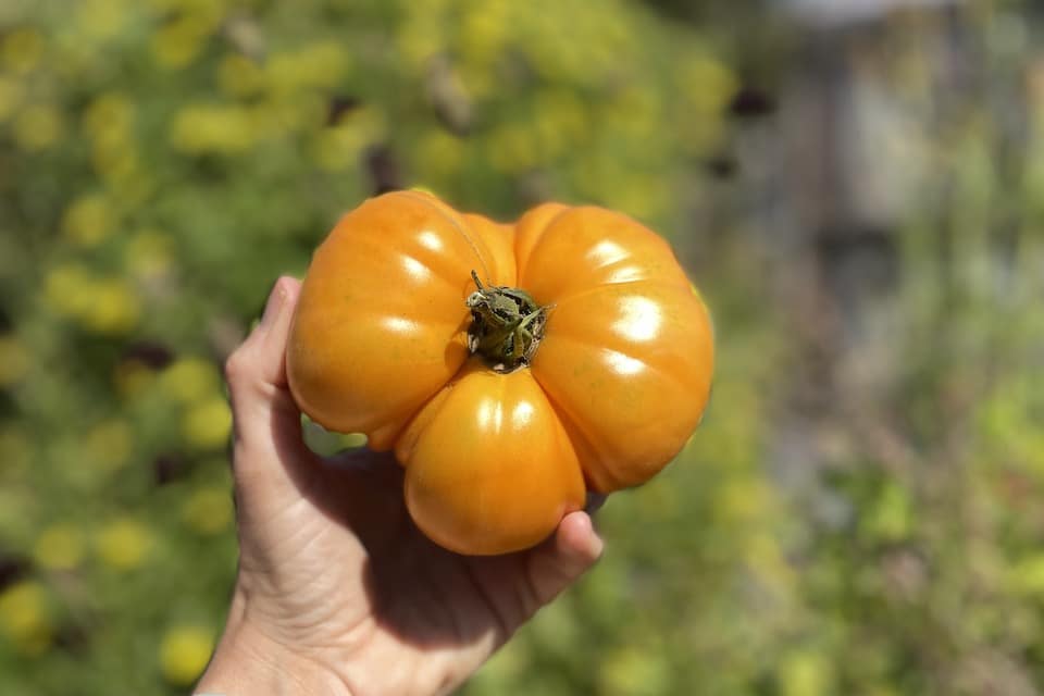 Indeterminate, slicer, pole tomato. An Amish heirloom since the 1930s, this beefsteak variety yields abundant 1-2 pound lemon-yellow fruits, sometimes with a pink blush. Sweet, fruity flavor with a meaty texture. Prune to manage growth and maximize yield. Avoid over-fertilizing, and water at the base to prevent foliar diseases.